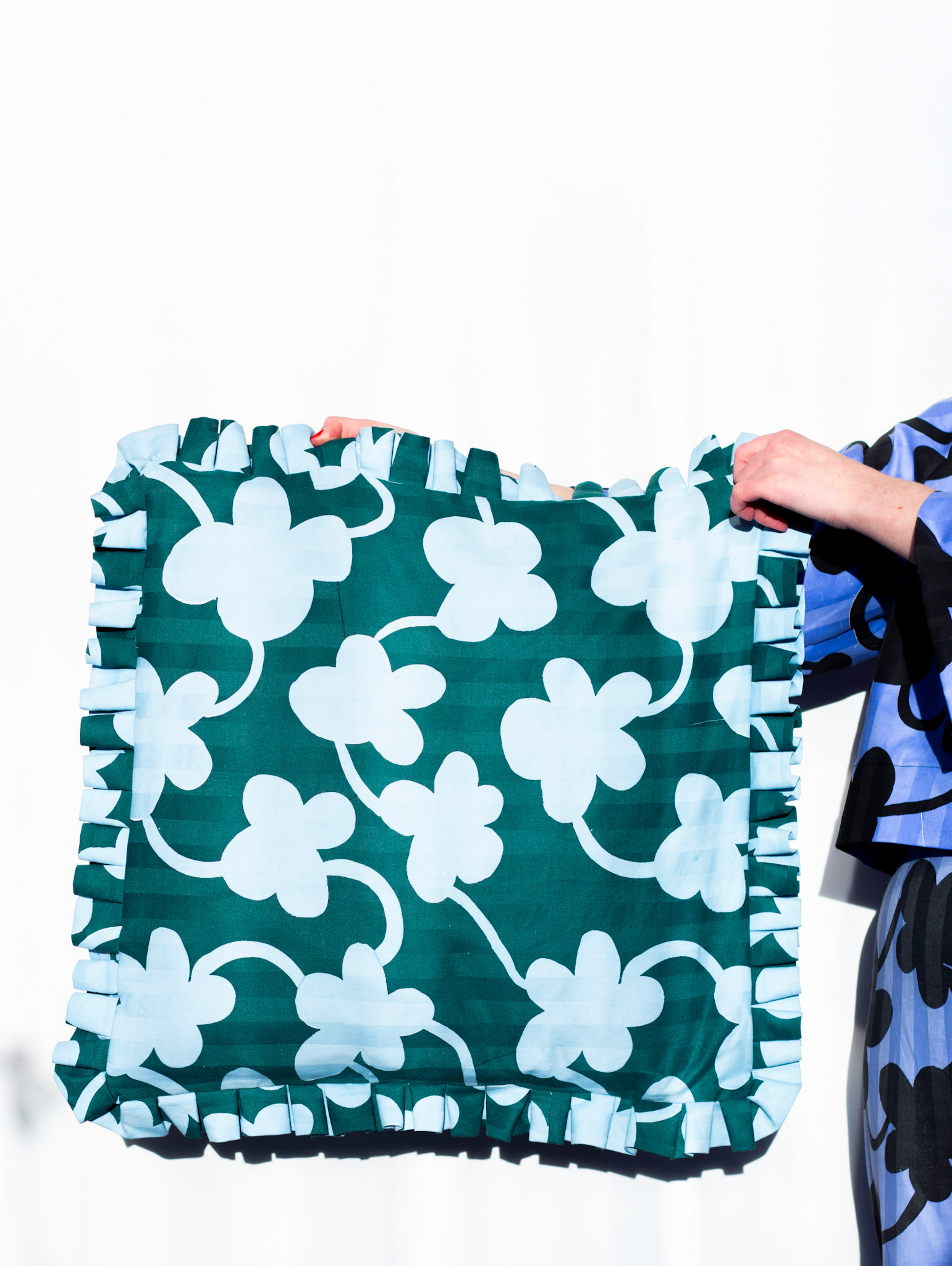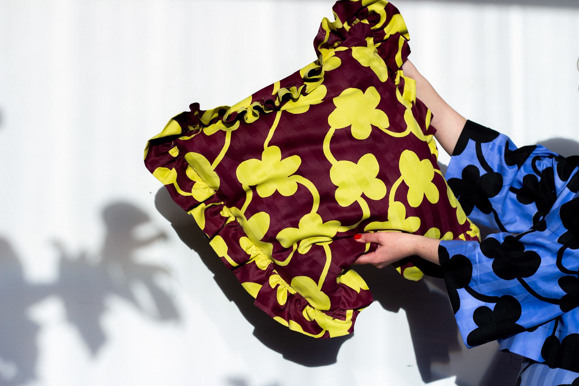 Fredrika Holmberg Studio skapar hållbara, handtryckta produkter, utifrån åkerbrukare material. Produkterna trycks med en teknik som kallas screentryck, på utsorterade material som exempelvis gamla hotell-lakan. Mönstren som används i produktionen är designade av Fredrika själv. Vi skapar designföremål i småskaliga kollektioner som släpps några gånger per år. Är du intresserad av att köpa en produkt. Håll utkik på vår Instagram för nästa släpp.
